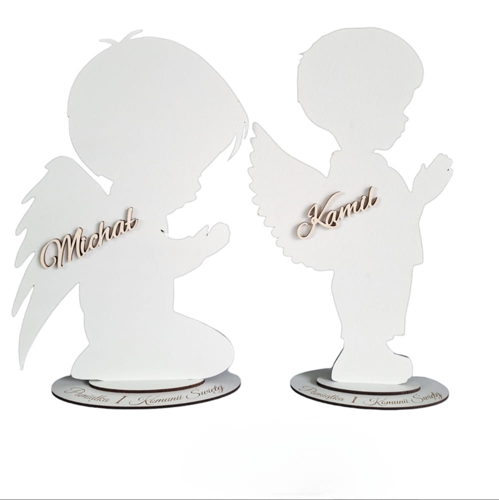 Aniołek CHŁOPIEC drewniany Pierwsza Komunia Święta Pamiątka