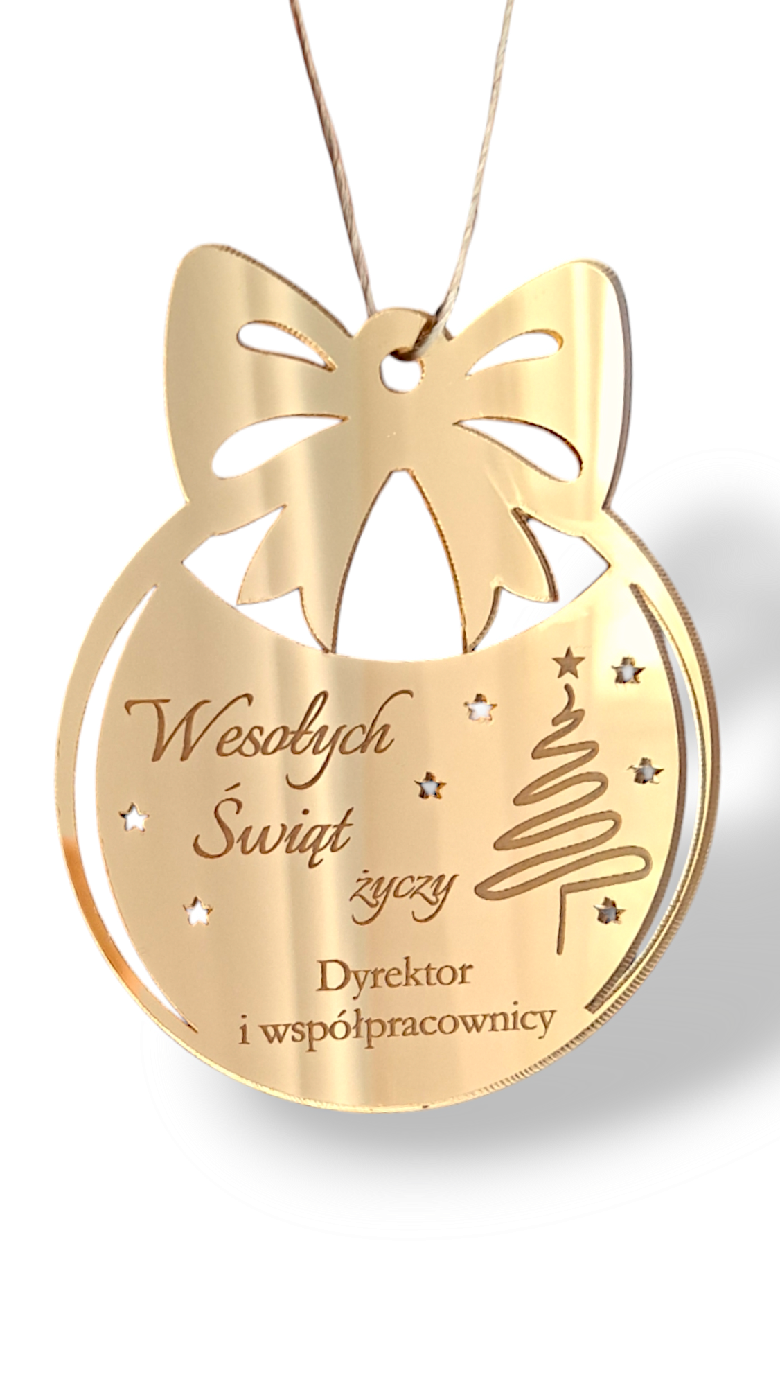 Bombka z Logo Firmy lustrzana złota pleksi świąteczny upominek (1)