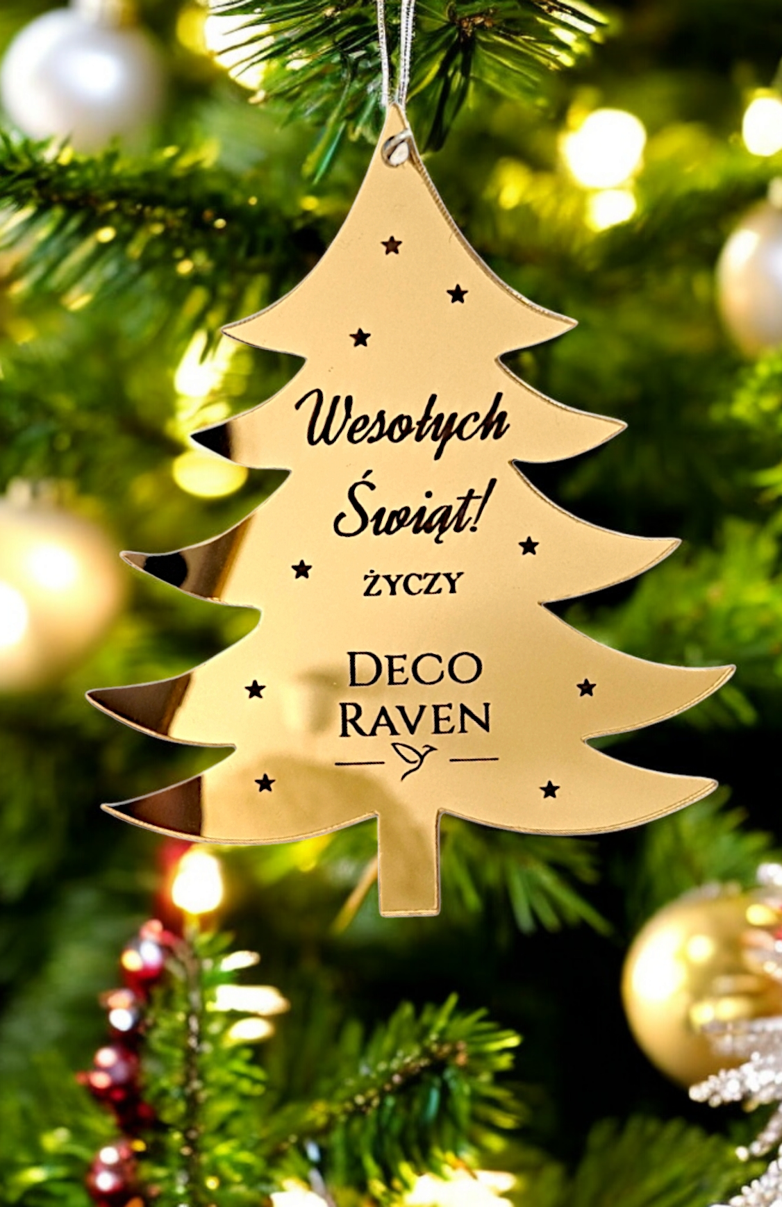 Bombka z Logo Twojej Firmy CHOINKA złota lustrzana plexi Grawer Upominek Boże Narodzene