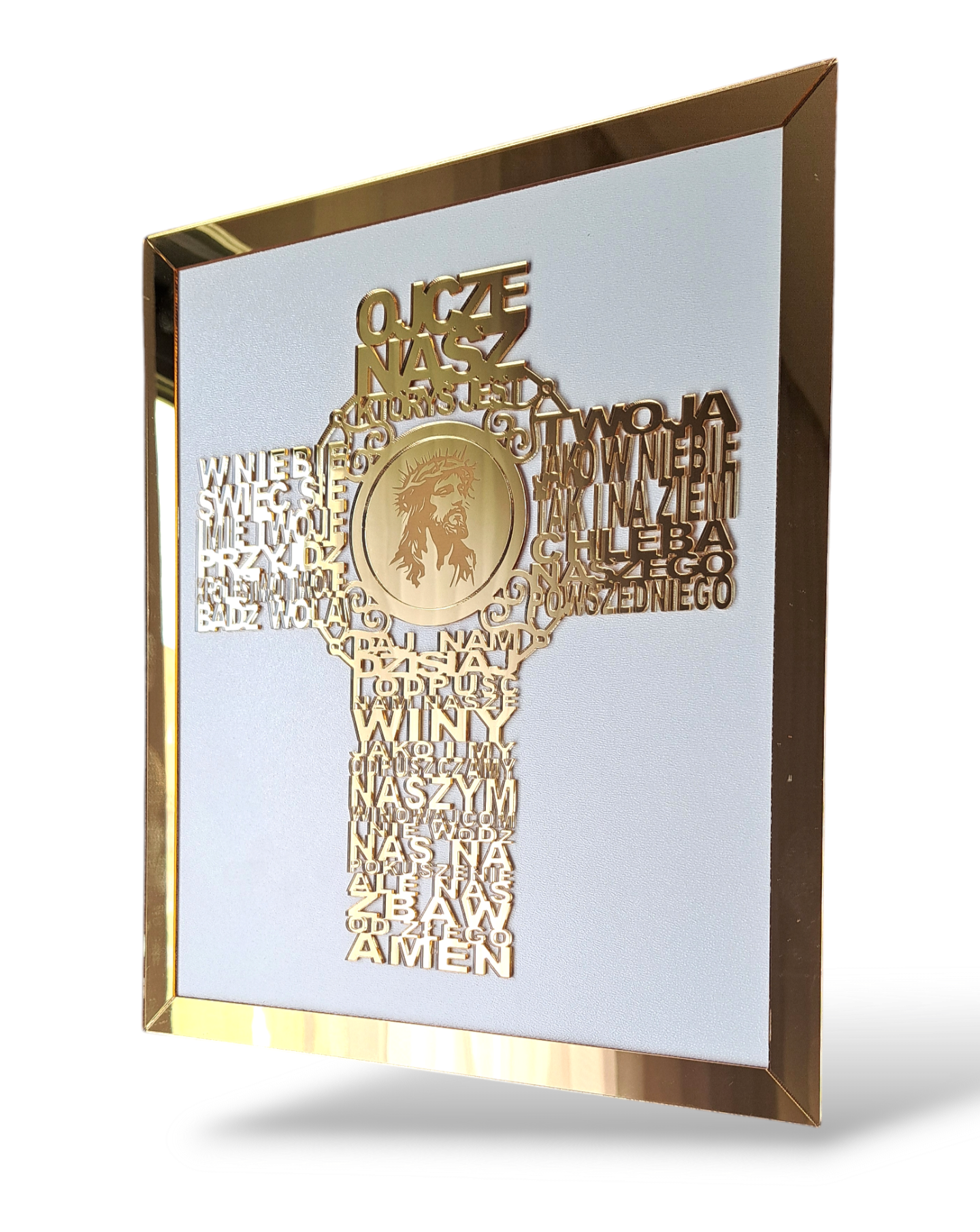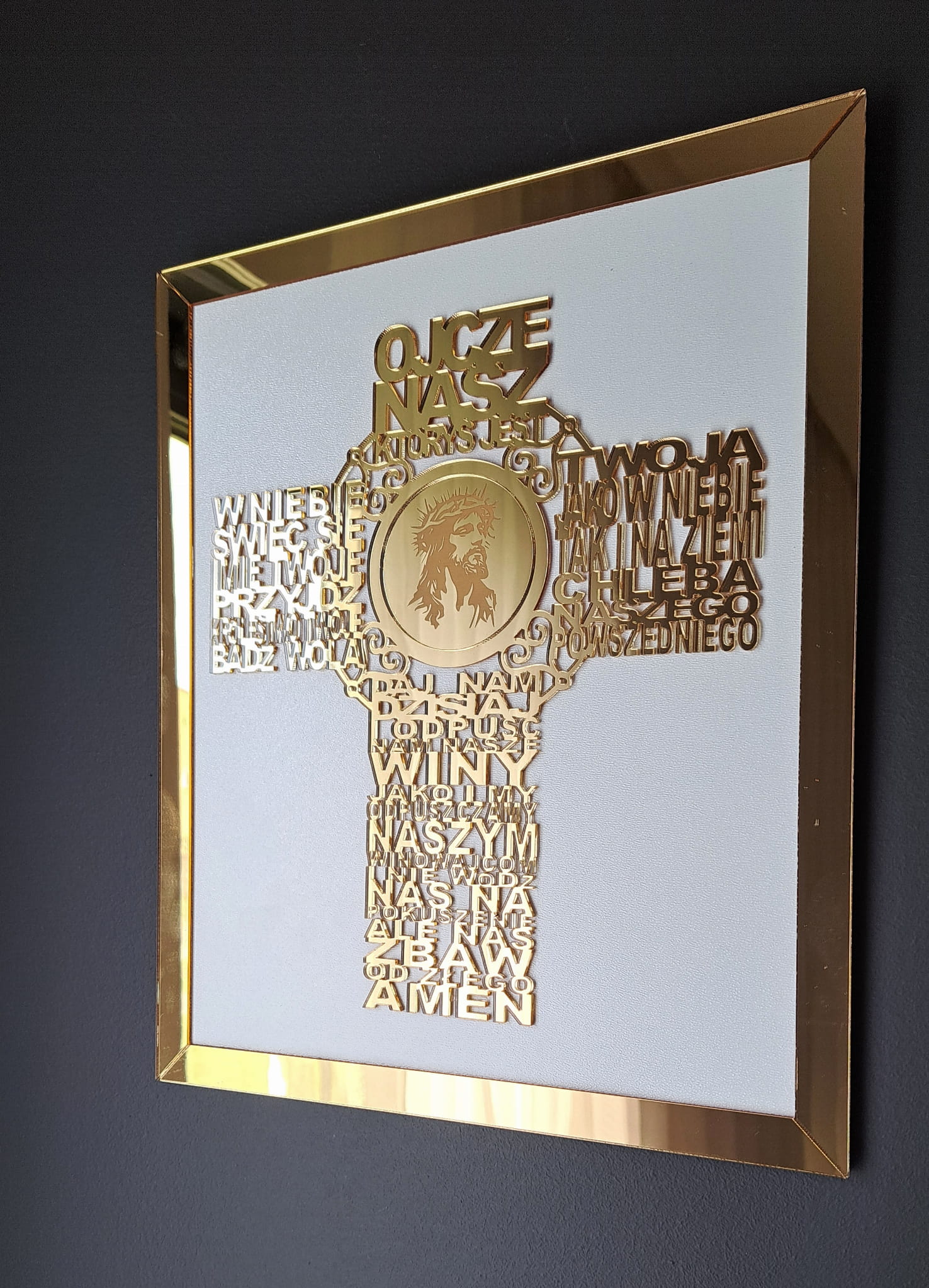 ramka oraz krzyż wykonany z pleksi lustrzanej złotej