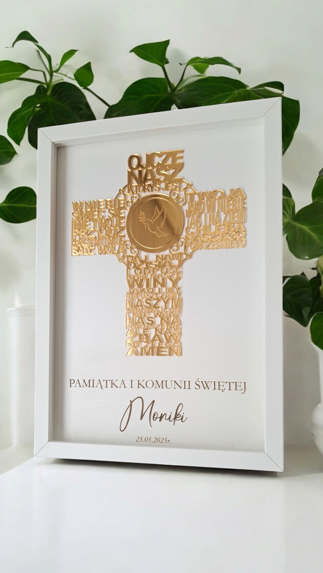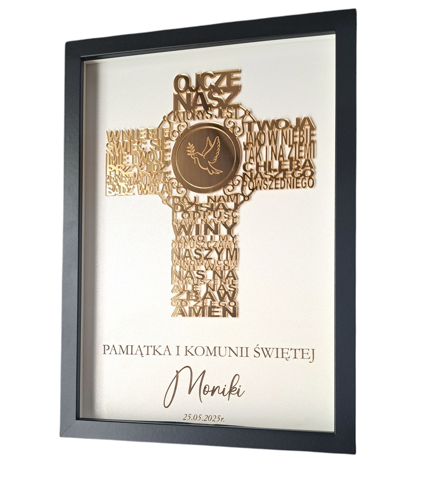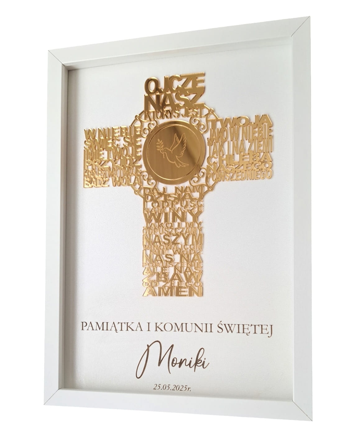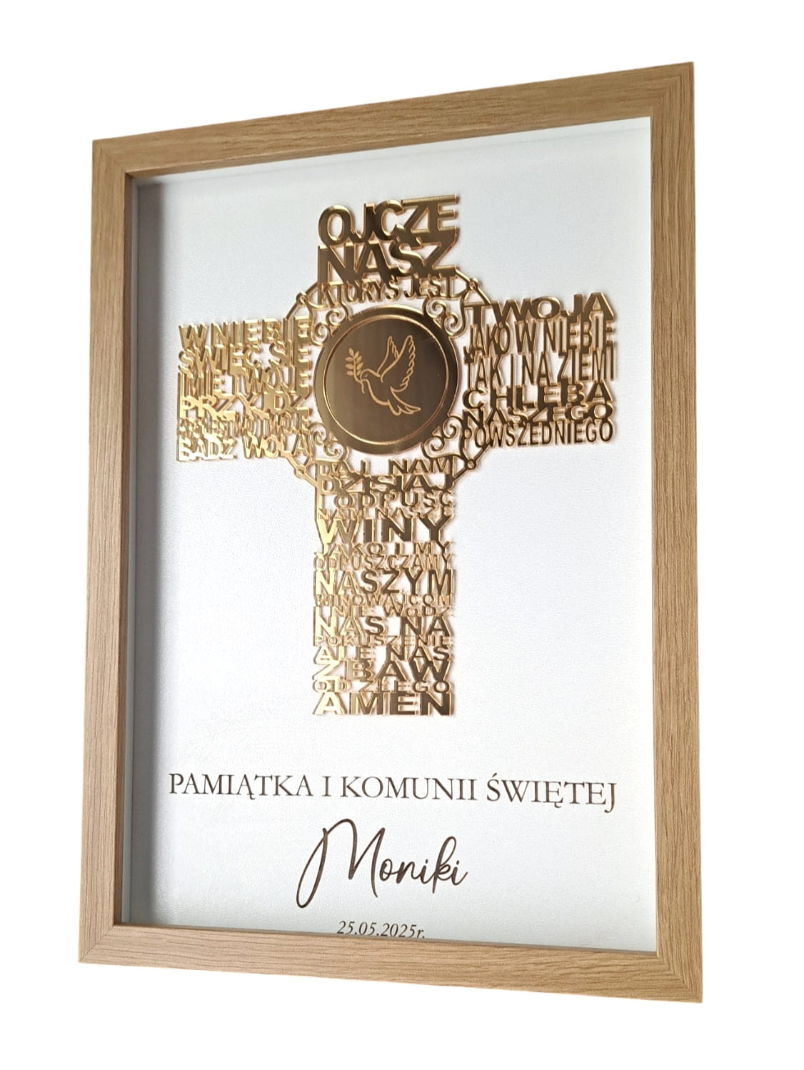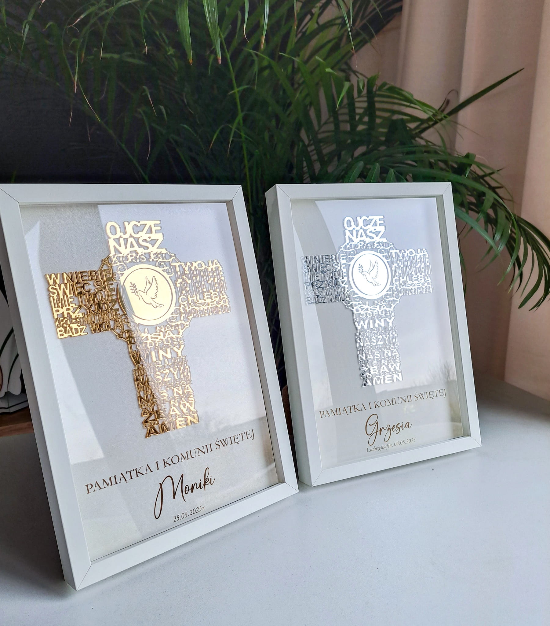 Pamiątka prezent Pierwszej Komunii Świętej Chrztu Świętego ramka z modlitwą 3D 30x21