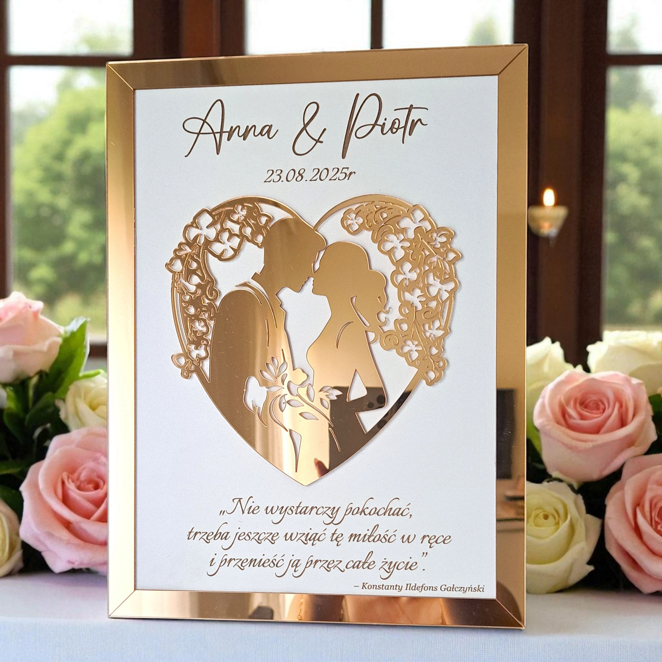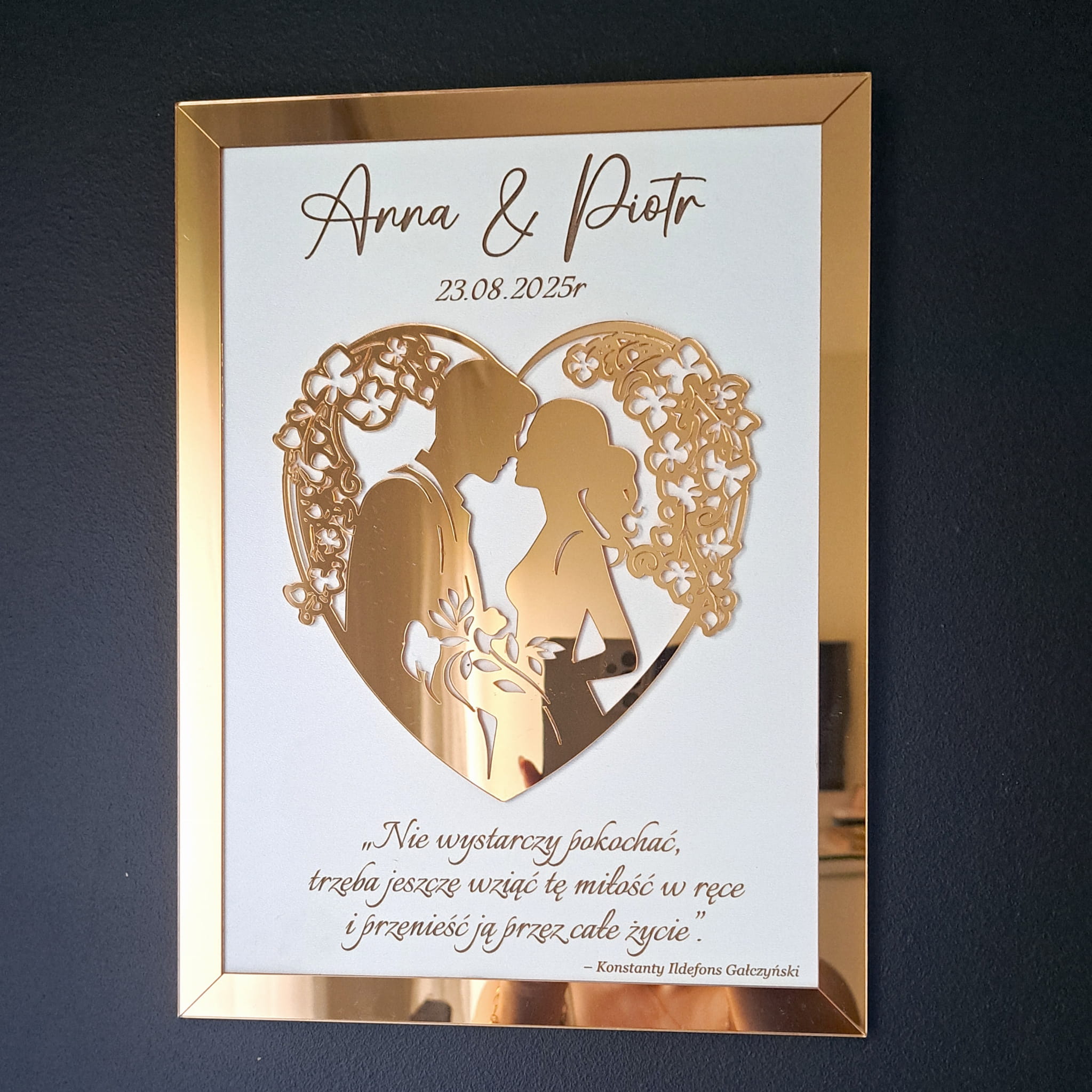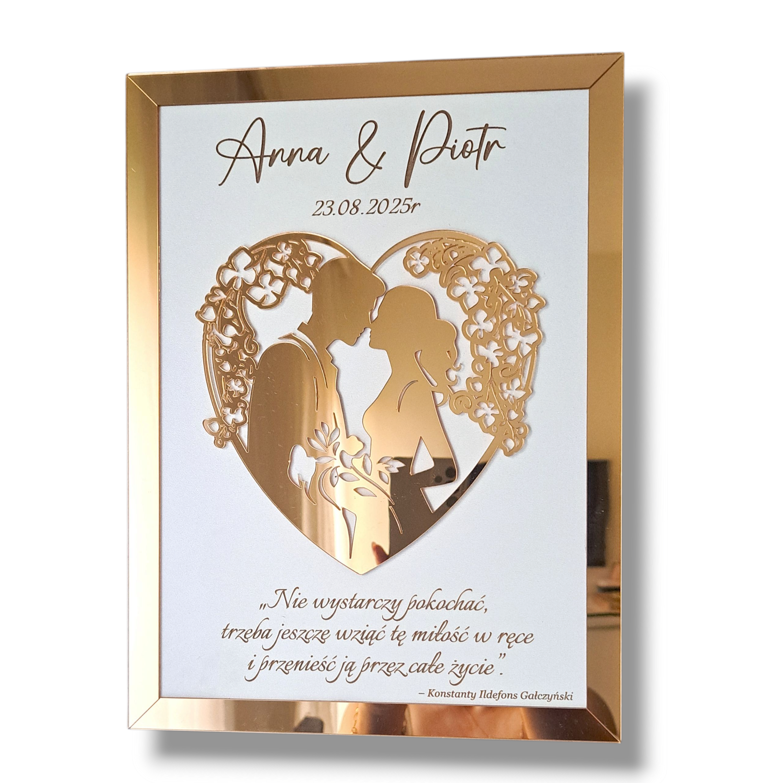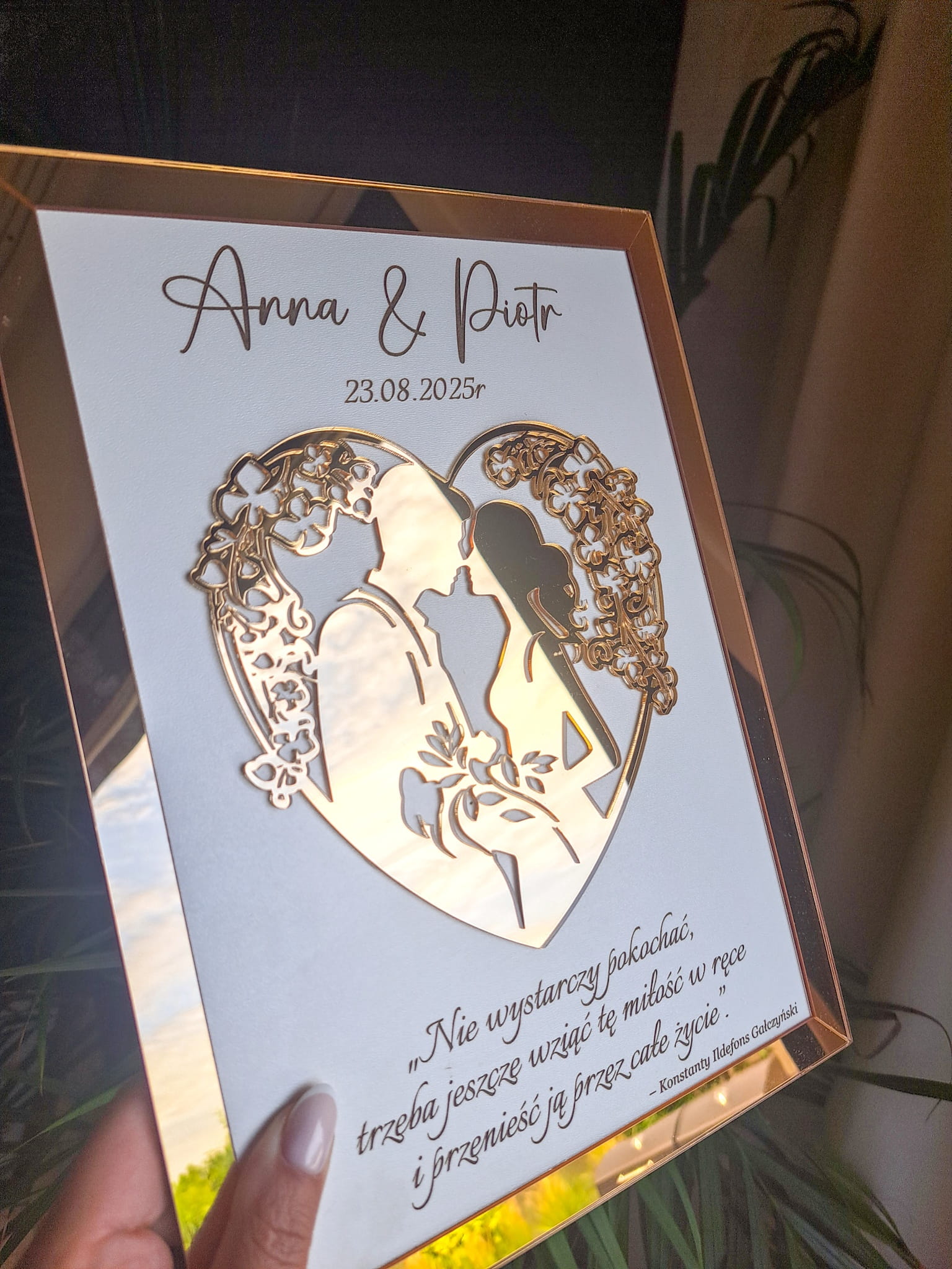 Prezent na ślub Obraz pamiątka Państwo Młodzi Personalizacja efekt lustra (1)