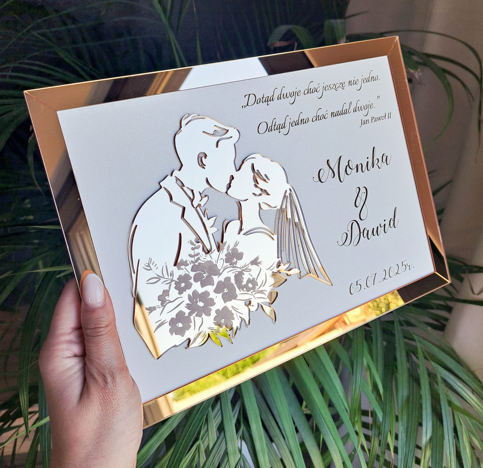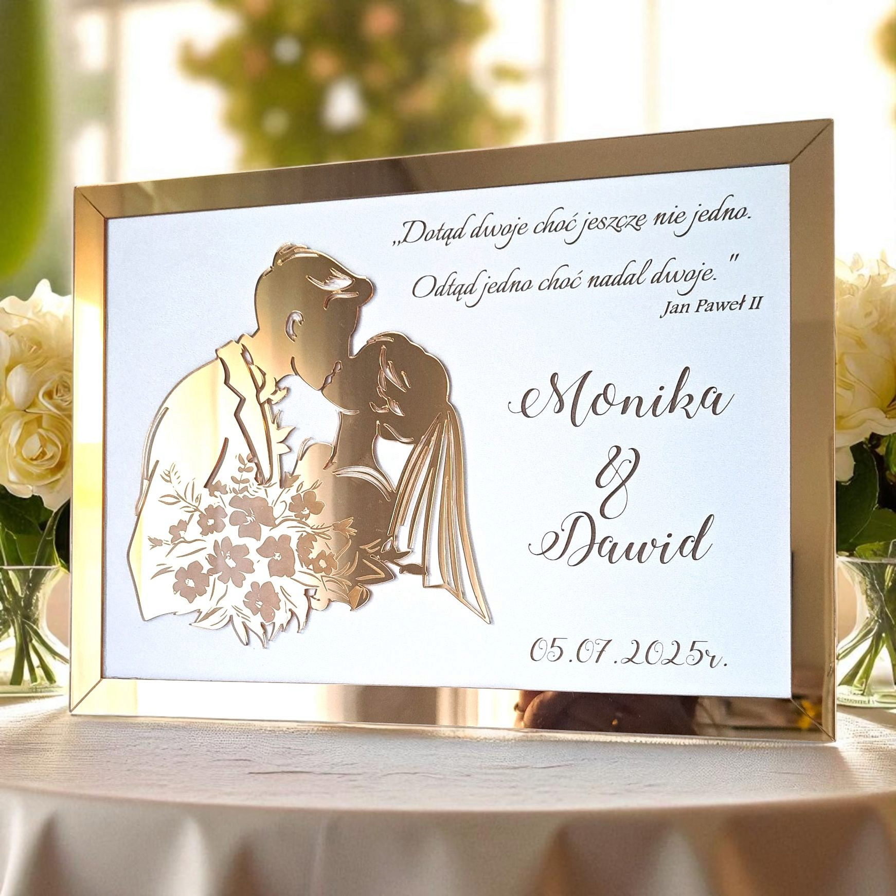 Prezent na ślub Obraz pamiątka Państwo Młodzi Personalizacja efekt lustra