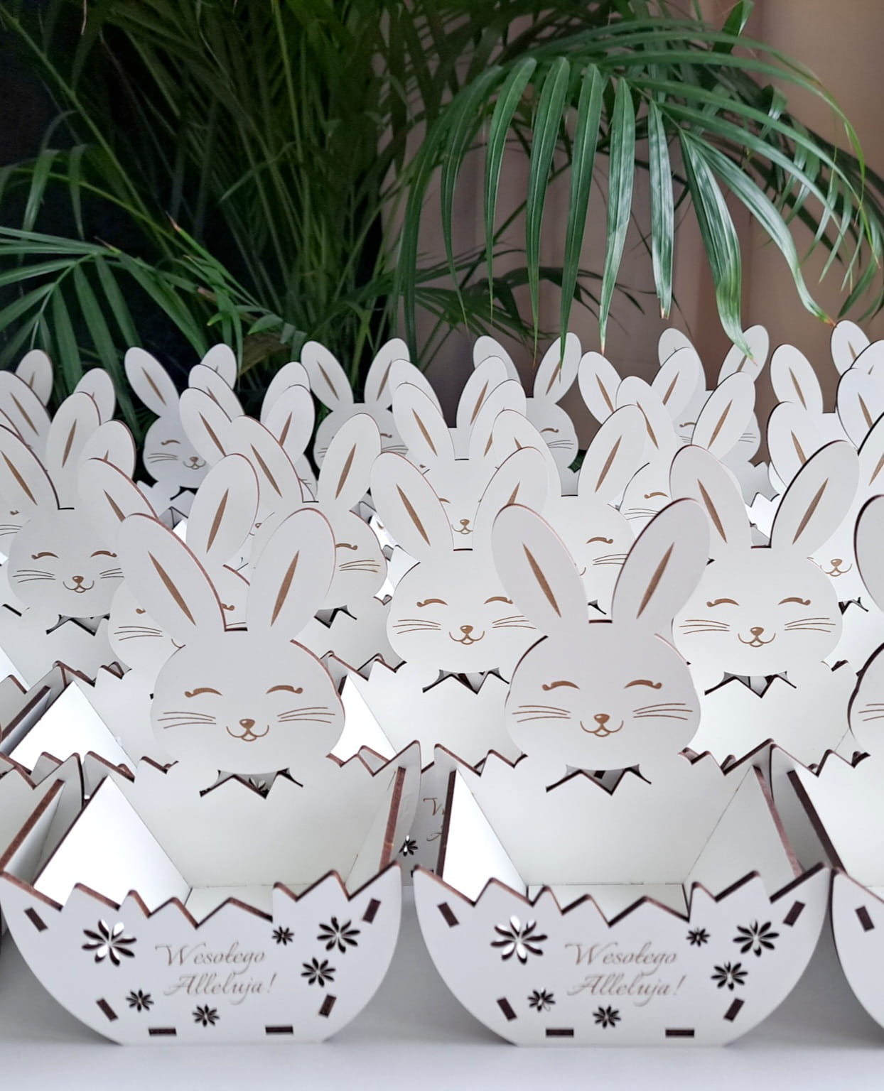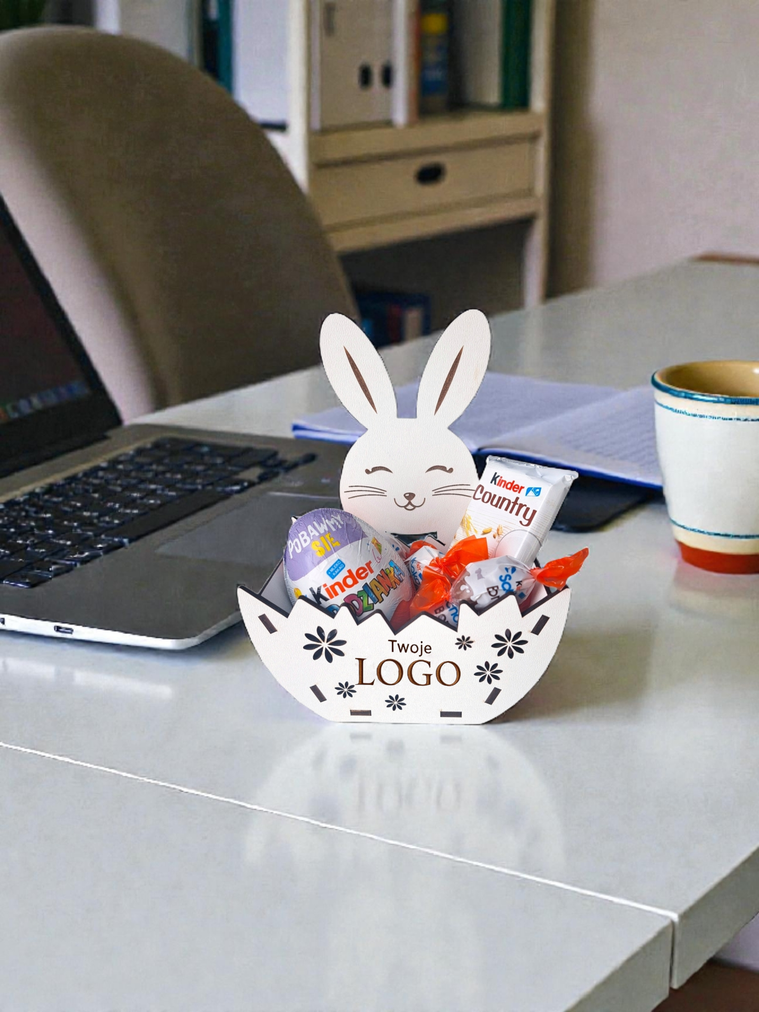 Drewniany koszyczek „Zajączek” na słodycze z LOGO firmy, gminy, instytucji lub fundacji